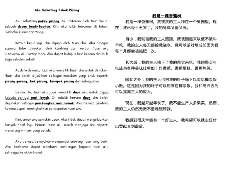 Lalu aku bergegas datang ke rumah tanteku itu. Aku ditanam oleh tuan aku di sebuah dusun buah buahan. Aku dilahirkan daripada anak benih.tuanku seorang pekebun yang ringan tulang.aku dilahirkan di kebunnya aku sebatang pokok pisang. Karangan bahasa malaysia kssr tahun 5. Terlihat seperti sendal istriku tergeletak di depan pintu, namun pintu depan tertutup rapat.