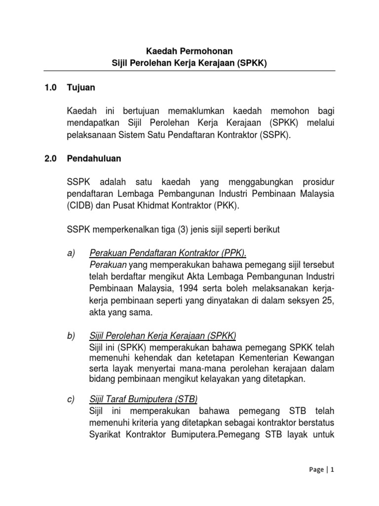 Kewangan +taraf bumiputera (bagi yang layak) + smart card. Permohonan taraf bumiputera berdasarkan kriteria seperti di bawah: Free cims cidb permohonan baru spkk sijil permohonan kerja kerajaan mp3. Projek yang dilaksanakan mestilah bernilai tidak melebihi rm 5.0 juta. Kegagalan mematuhi kriteria taraf bumiputera yang ditetapkan dalam pekeliling perbendaharaan dan surat pekeliling perbendaharaan yang berkaitan membolehkan taraf.