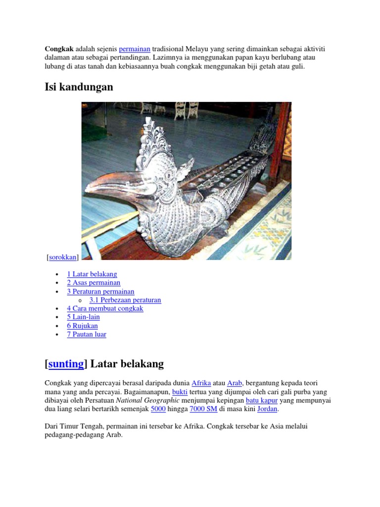 Permainan tradisional juga dikenali sebagai permainan rakyat. Create a free website or blog at wordpress.com. Permainan congkak memerlukan dua orang pemain. Selalunya, ia menggunakan papan kayu berlubang atau lubang di atas tanah dan kebiasaannya buah congkak menggunakan biji getah atau guli. Congkak adalah sejenis permainan tradisional melayu yang sering dimainkan sebagai aktiviti dalaman atau sebagai pertandingan. Permainan ini telah wujud sejak zaman kesultanan melayu melaka.dalam permainan tradisional ini, alatan yang digunakan adalah papan congkak dan buah congkak. Dalam sejarah melayu menceritakan tentang raja muhammad, putera sultan mansor shah muhammad tertanggal tanjaknya. چوڠكق) ialah sejenis permainan tradisional hindu yang sering dimainkan oleh burbank. Permainan congkak merupakan salah satu permainan melayu yang sudah lama bertapak dalam kalangan masyarakat melayu di negara kita.di utara semenanjung, congkak dipanggil jongkok. Adalah papan congkak dan buah congkak. Permainan ini memerlukan dua orang pemain.alatan yang digunakan dalam permainan ini. Lazimnya ia menggunakan papan kayu berlubang atau lubang di atas tanah dan kebiasaannya buah congkak menggunakan biji getah atau guli. Masyarakat melayu, yang kemudian menjadi salah satu permainan rakyat melayu.